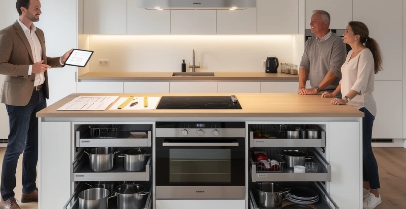 Contrairement à une cuisine linéaire traditionnelle, l’îlot central avec plaque de cuisson implique des défis particuliers en matière d’évacuation des fumées, d’alimentation électrique et de circulation autour de l’équipement. Les professionnels constatent une augmentation de 35% des demandes pour ce type d’aménagement depuis 2020, confirmant l’engouement pour les cuisines ouvertes et fonctionnelles. Cette popularité croissante s’explique par la polyvalence de l’îlot qui combine efficacement espace de préparation, zone de cuisson et lieu de convivialité.